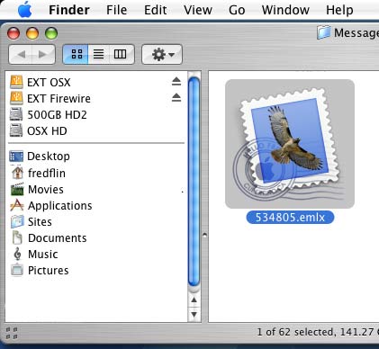 Now launch Apple "Mail" and drag the message to wherever you want it.