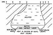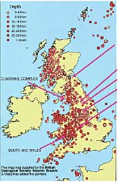 I gave much thought to the areas of interest in the seismic presentations from the B.G.S. maps. The "aseismic" areas depicted in them attracted my attention. The earthquakes occurring in clusters along and around the grabens and sink holes depicted in figures 2 and 6, lead me to suspect that lying deep in these fairly impermeable grabens or holes there are geothermal aquifers - Figure 5 section B.