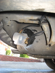 The switch is a simple push button to toggle between LPG and petrol. In normal operation the red (bottom left) and green (bottom right) LEDs will flash, indicating that the engine is running on petrol until it has warmed up - usually about 4 minutes. Once it's warmed up, the red LED goes green and some of the four LEDs in the right-hand column will light to indicate approximately how much LPG is left in the tank. The tank replaces the spare wheel and, because it's taller than the wheel, foam rubber is used to raise the boot floor by about two inches (50mm). The conversion was carried out by P & T Autogas in Macclesfield. They had the car for one week. It runs well (sometimes - see below) and I have no complaints about the work. It does about 4 miles per litre of LPG around town. This may seem poor but it equates to about 18mpg and the car often does less than 24mpg on petrol. If you consider that LPG is currently half the cost of unleaded petrol, it's actually more economical to run on LPG. I anticipate getting better mpg on a long run. Curiously, the MPG computer still gives plausible readings for instantaneous and average. I don't understand how this is possible! I thought that the petrol simply circulates at normal pump pressure. Maybe the ECU is basing its calculation on injector opening times, rather than using a flow meter? The car has always had a slight misfire when cruising at 47 mph. This is much worse on LPG and stretches from 40 - 55mph. I've replaced plugs, leads, coil pack and cam position sensor (which came up in the error test) without fixing it. In addition, the car runs smoothly on LPG only some of the time. The rest of the time it is reluctant to tickover smoothly or accelerate smoothly unless I "kick down", at which point it roars away with much gusto and occasional "popping" from under the bonnet. It appears to run best when the gas tank is no more than half full, which makes me wonder if the regulator is faulty. Investigation continues. August 2008 The Vauxhall expert told me that the "E GAS" LPG ECU has only a rich/weak adjustment, whereas other makes have a more comprehensive adjustment capability based on engine speed etc. He told me that it was impossible to get the mixture right at every point in the rev range. P&T refuted this and stated that the car had an inherent fault which was causing the misfire. I have changed the coil pack and plug leads withut making any improvement. Frankly, there isn't much left to replace now so I'm out of ideas! |