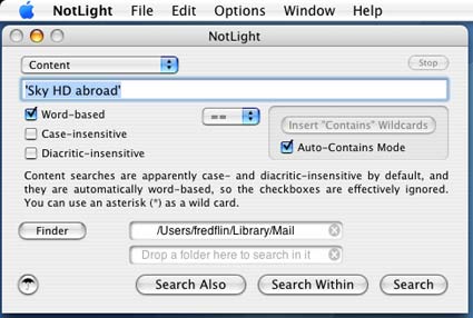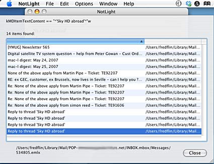Copy a unique phrase from your incoming message and paste it into "NotLight". Set the search folder to be your Mail folder, which is located at