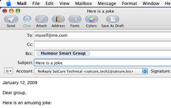 Instead, put your own email address (or a dummy address or an autoresponder address) in the "To" field and put the rest in the "Bcc" field. Apple Mail will allow you to use a group of email addresses from "Address Book". This group can be a "smart group". To create a "smart group", open "Address Book" and type (for example) "humour" in the "Notes" field of every intended recipient. Then create a "smart group" which selects all the people with "humour" in the record. Close Address Book and start to type "humour" in the "Bcc" field of a new Mail message. Your "Humour Smart Group" will be selected automatically.