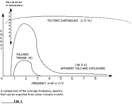 This question is best answered by understanding that magmas are the prime motivator of volcanism. These migrate underground and, in so doing, contact many highly variable materials including minerals, rocks, fluids, gases, etc. It is the highly variable nature and mixture of these elements that seems to give minor- to great variations of activity, which add to the basic seismic frequencies and amplitudes of magmatic tremor (fig. 1). See a list of types in Appendix 1.