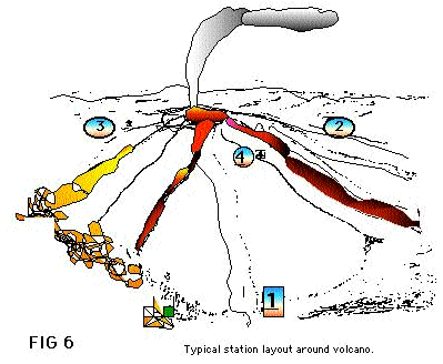 For setting up a temporary or permanent seismic network on an active or dormant volcano, three or four seismic stations around the base can produce an excellent monitoring system; it is considerably enhanced if the fourth station can be set up near the summit, or at least half way between the summit and the base stations in elevation